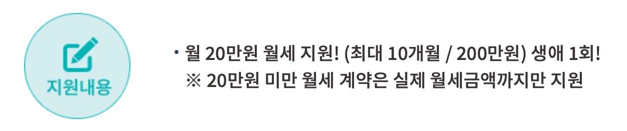 월 20만원의 월세를 최대 10개월간 지급하여 총 최대 200만원의 혜택을 받을 수 있습니다!!
