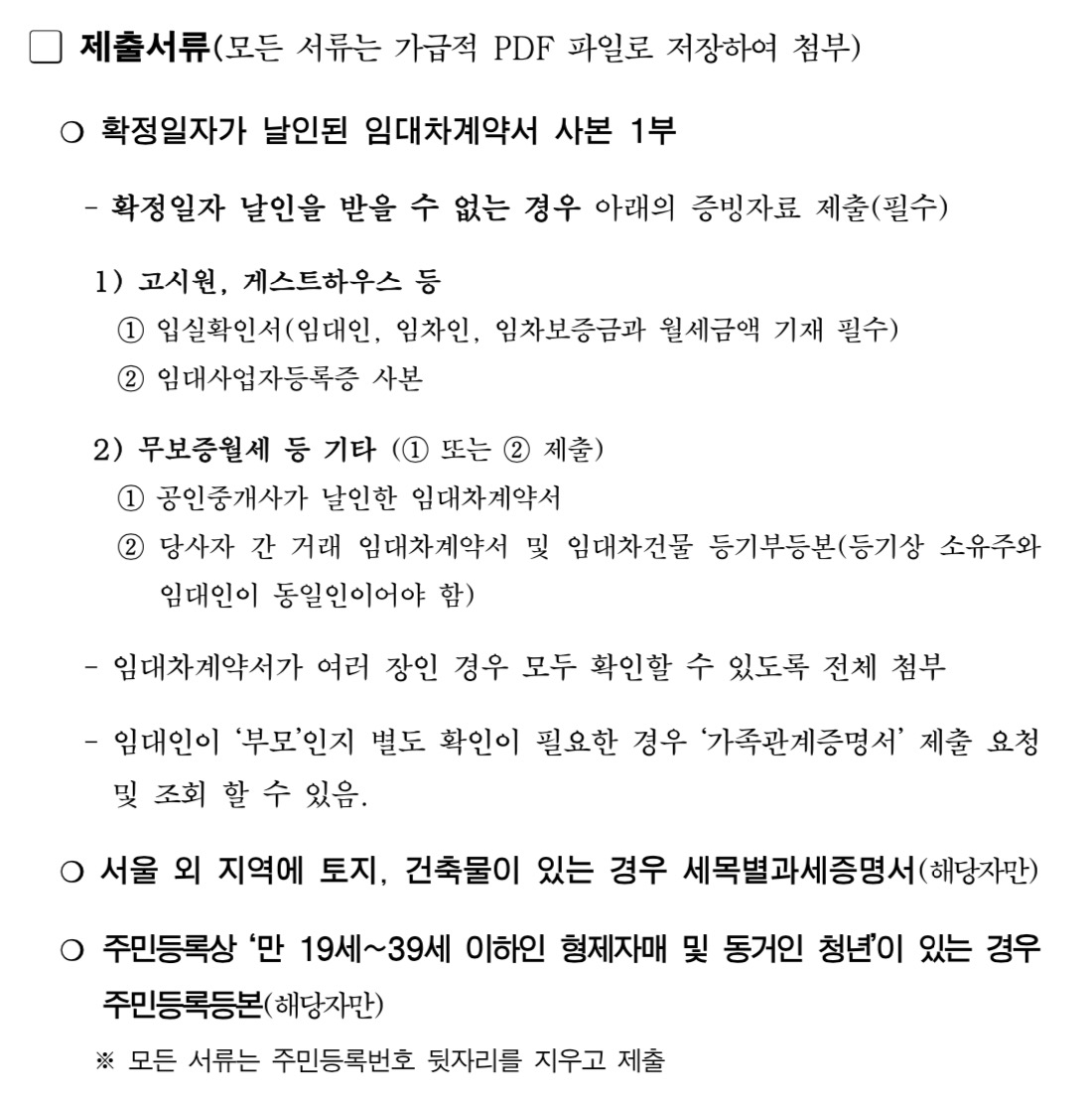 위의 자격요건은 공고일 기준이 아닌 신청일 기준이라고 하니, 해당하시는 분은 빨리 확정일자를 받아두시기 바랍니다!